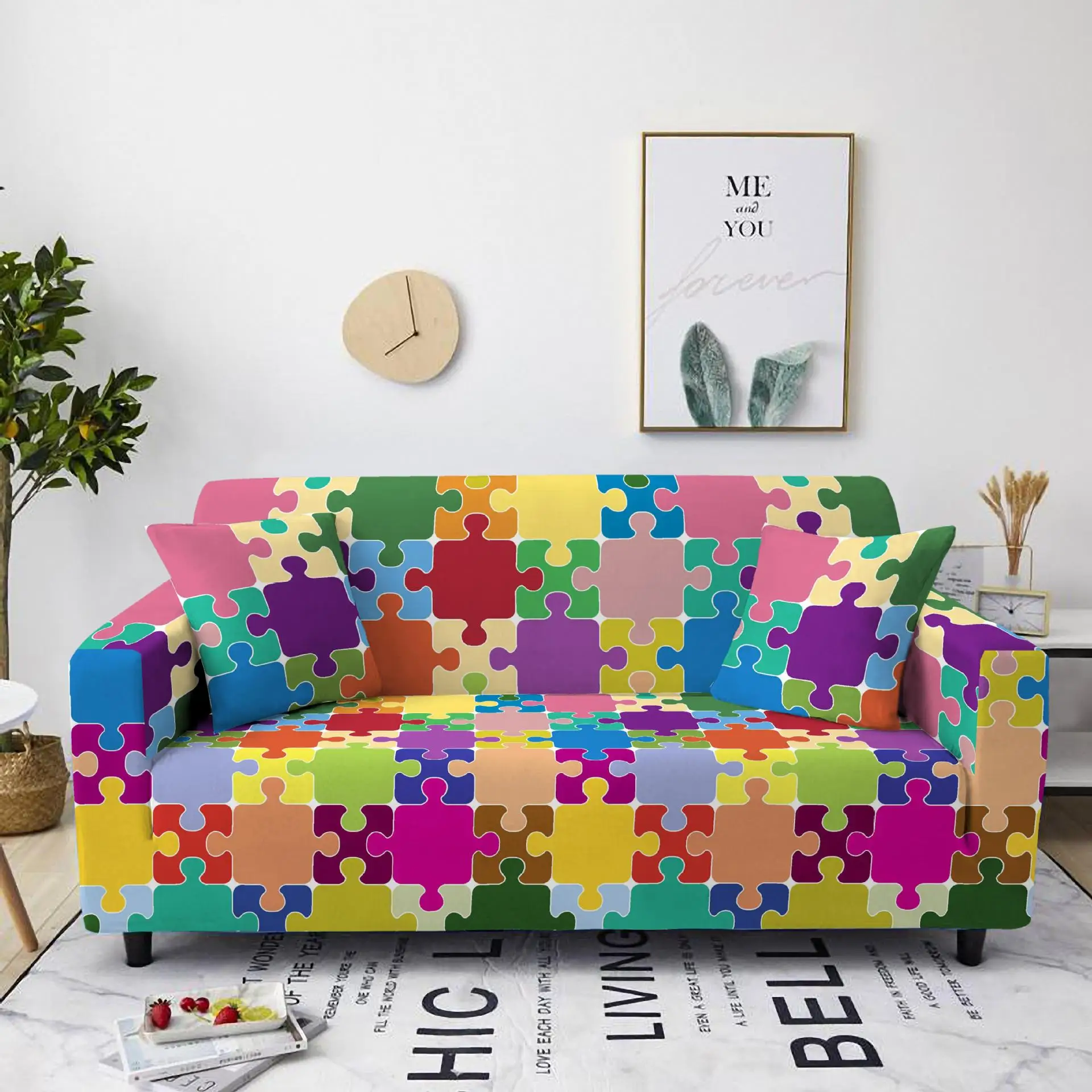 Купить 3D Digital Printing Sofa Cover Jigsaw Pattern Elastic Sofa Covers for Living Room Home Decor All Inclusive Sectional Sofa 1PC за 750рублей