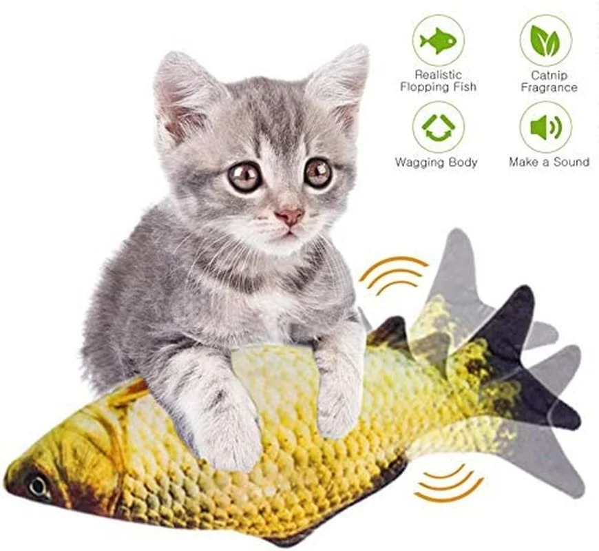 Купить 3D Floppy Fish Cat USB Charger Interactive Electric Toy Realistic Plush Simulation Wiggle Fish Catnip Indoor Chewing Playing за 350рублей
