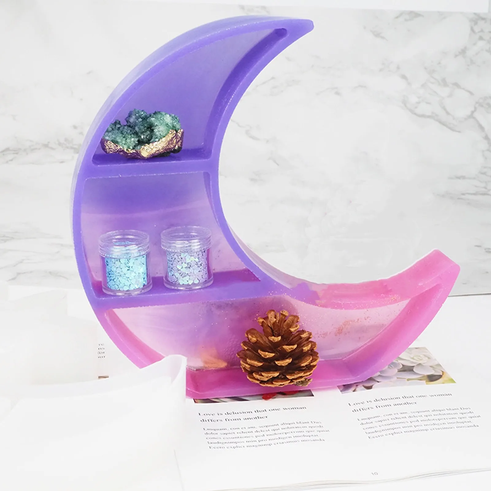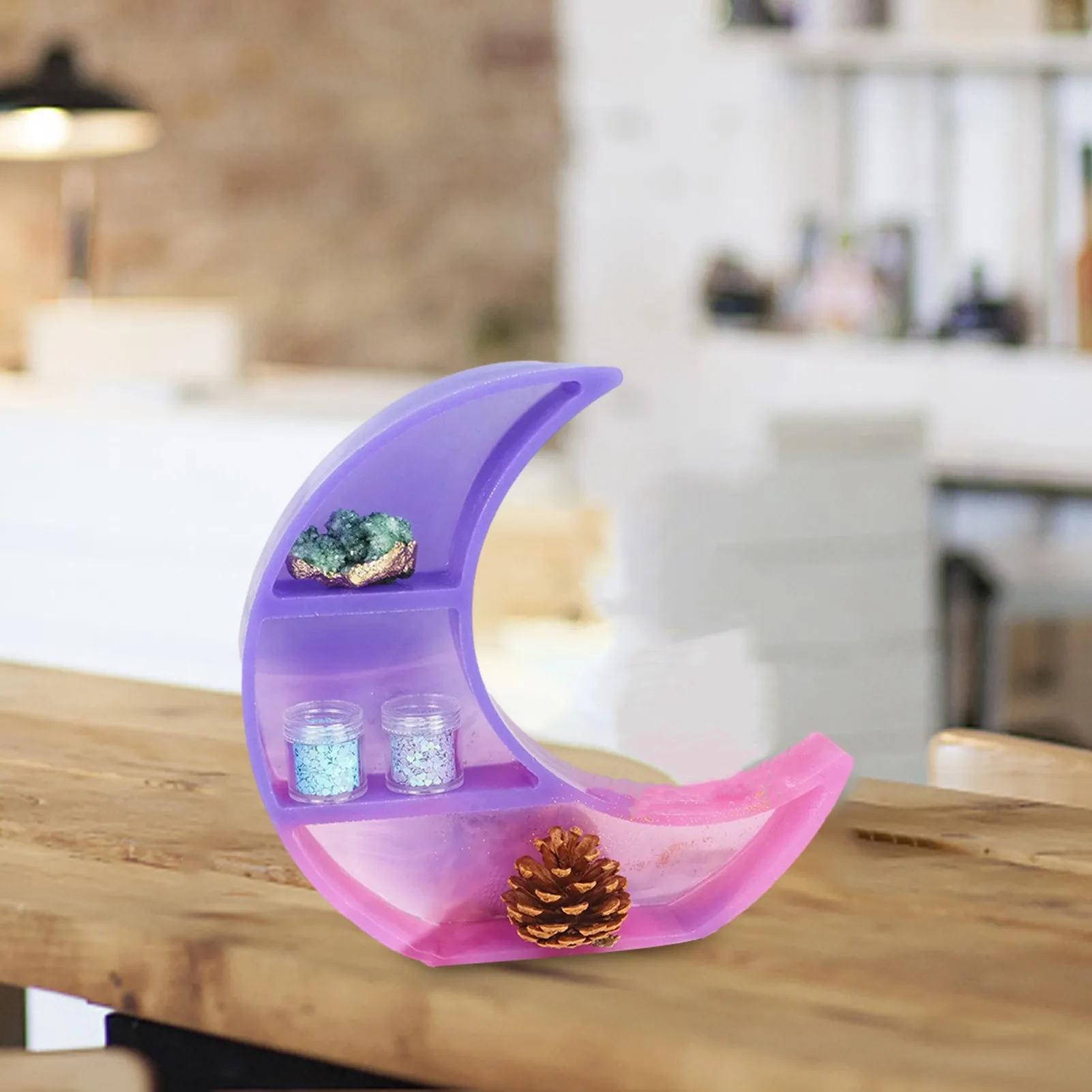 Купить 3D Moon Form Resin Silicone Mold DIY Crystal Display Shelf Jewelry Organizer Moon Tray Storage Box Resin Mold Desktop Home Decor за 200рублей