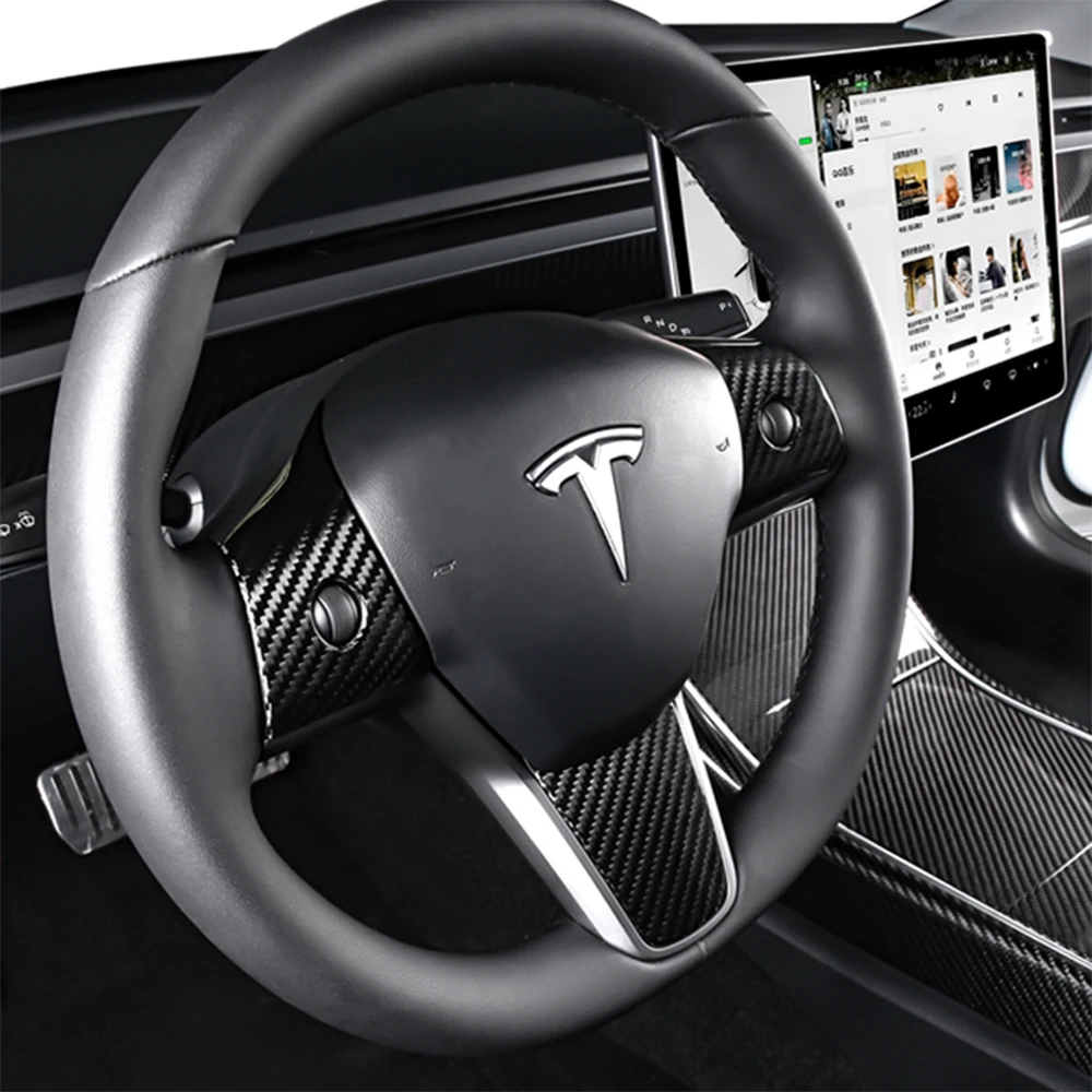 Купить 3PCS Carbon Fiber Steering Wheel Button Switch Trim Cover Sticker For Tesla Model 3 2019 2020 Car Styling Interior Accessories за 3700рублей