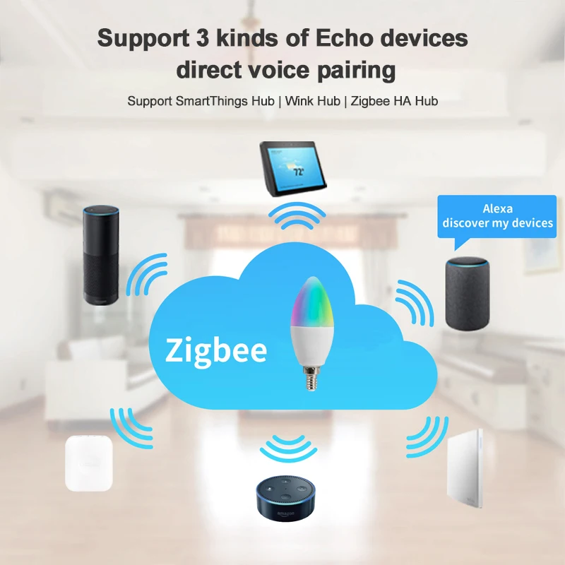 Купить 3Pcs Zigbee3.0 Smart Light Bulb E12 Base LED Candle Lamp Chandelier Work With Alexa Google Home за 1550рублей