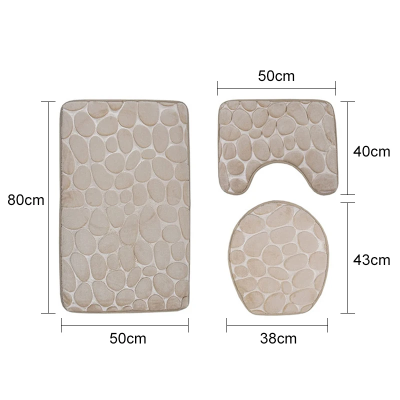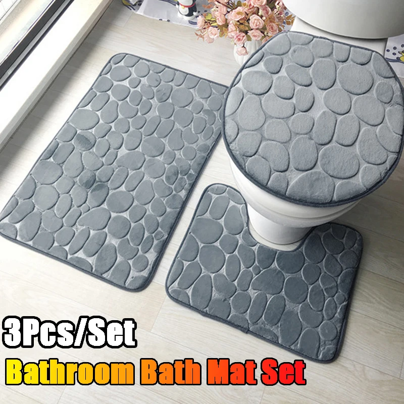 Купить 3Pcs/Set Bathroom Bath Mat Set Non Slip Soft Toilet Bathroom Absorbent Rug Shower Carpets Toilet Lid Cover Cobblestone Style Mat за 750рублей