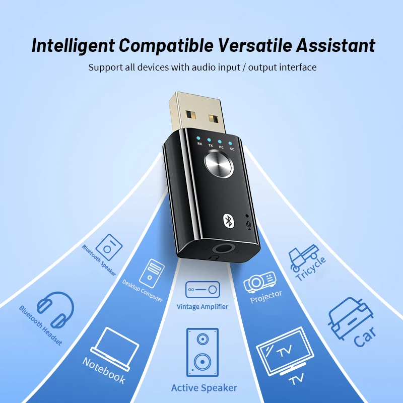 Купить 4 IN 1 USB Bluetooth Adapter 5.1 Stereo Music Audio Receiver Transmitter For PC TV Headphone WIth Mic Wireless Bluetooth Dongle за 1250рублей