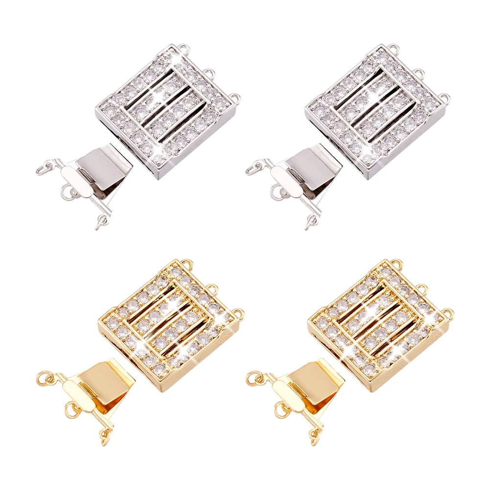 Купить 4 Sets Brass Cubic Zirconia Rectangle Box Clasps Mixed Color for DIY Necklace Bracelet Jewelry Making Accessories 32.5x22x6.4mm за 1100рублей