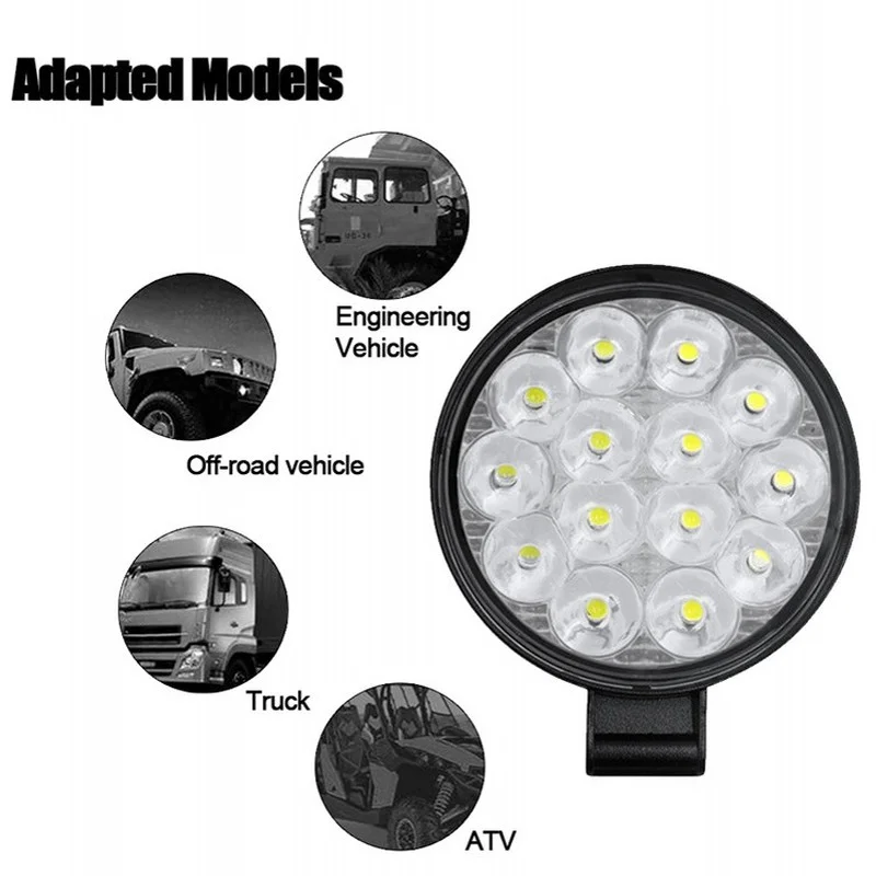 Купить 42W 14LED Work Light LED Car Front Fog Light 12V 24V for Truck SUV 4X4 4WD Engineering Headlights Off-road LED Round Headlamp за 350рублей