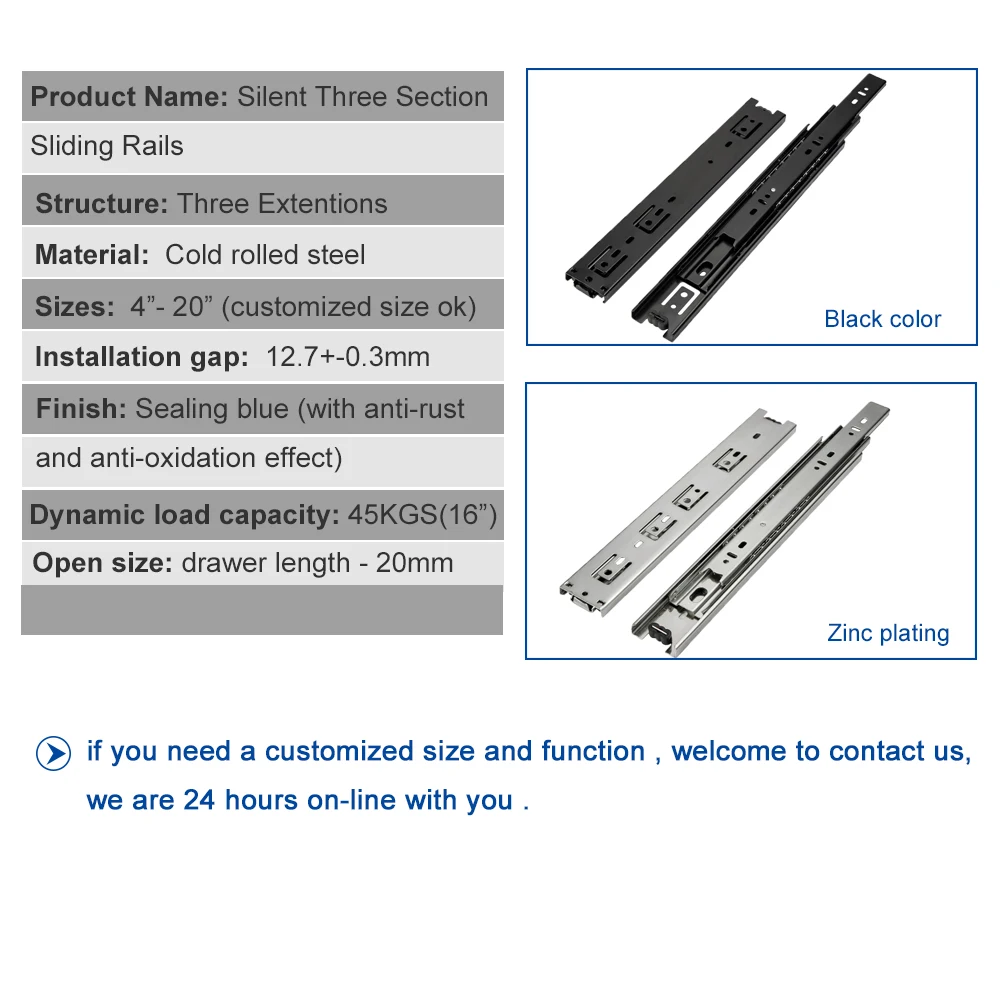 Купить 45mm Wide Mini Drawer Slide Standard Budget Rail Furniture Cabinet Slider 45KG Capacity Ball Bearing Three Section Full Open за 650рублей