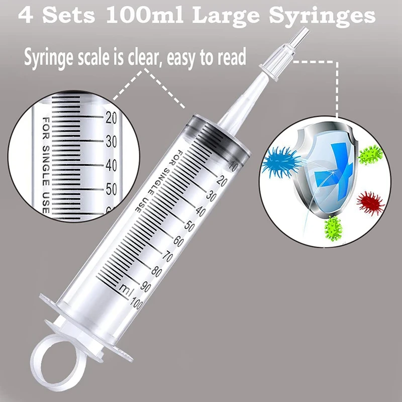 Купить 4PCS 100 Ml Large Plastic Syringe Garden Syringe Measuring Syringe Tools With Tubing Hoses For Scientific Labs, Watering за 550рублей