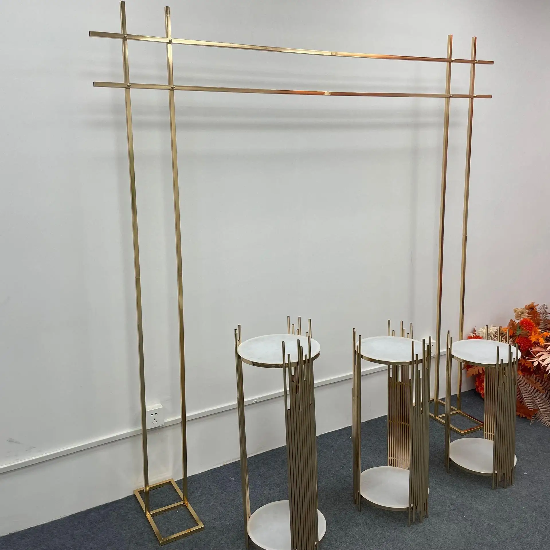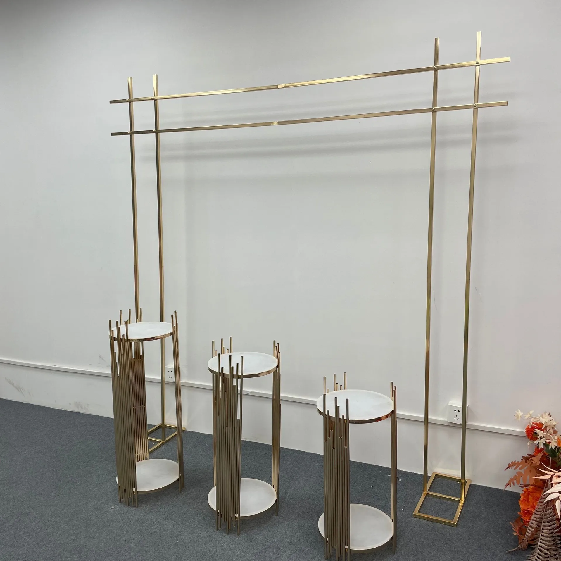 Купить 4PCS Shiny Gold Grand Event Backdrops Decoration Flower Arch Balloons Curtain Display Stand Party Stage Wedding Candy Table Prop за 20000рублей