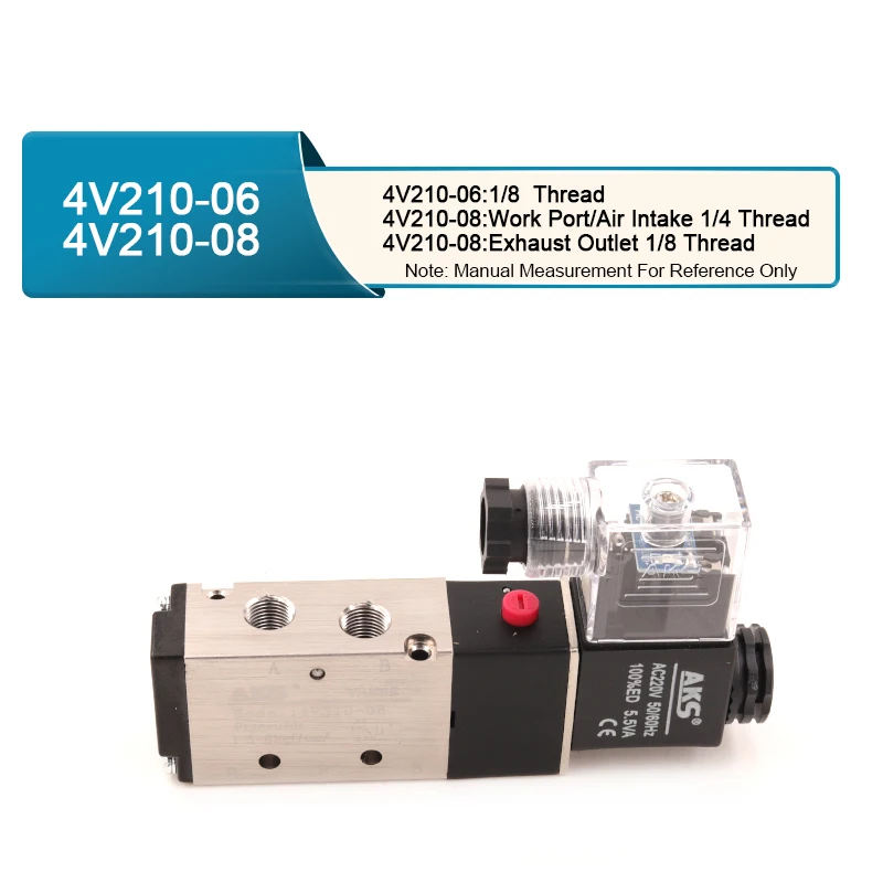 Купить 4V210-06/08 Pneumatic Electric Solenoid Valve 5 Way 2 Position Gas Control Air Magnetic Valve DC/AC Coil Volt Hose Fittings за 650рублей