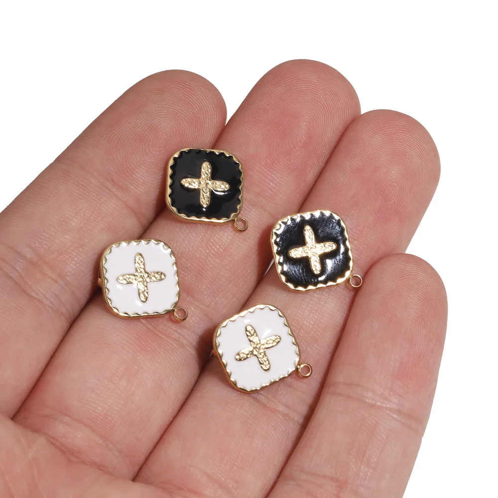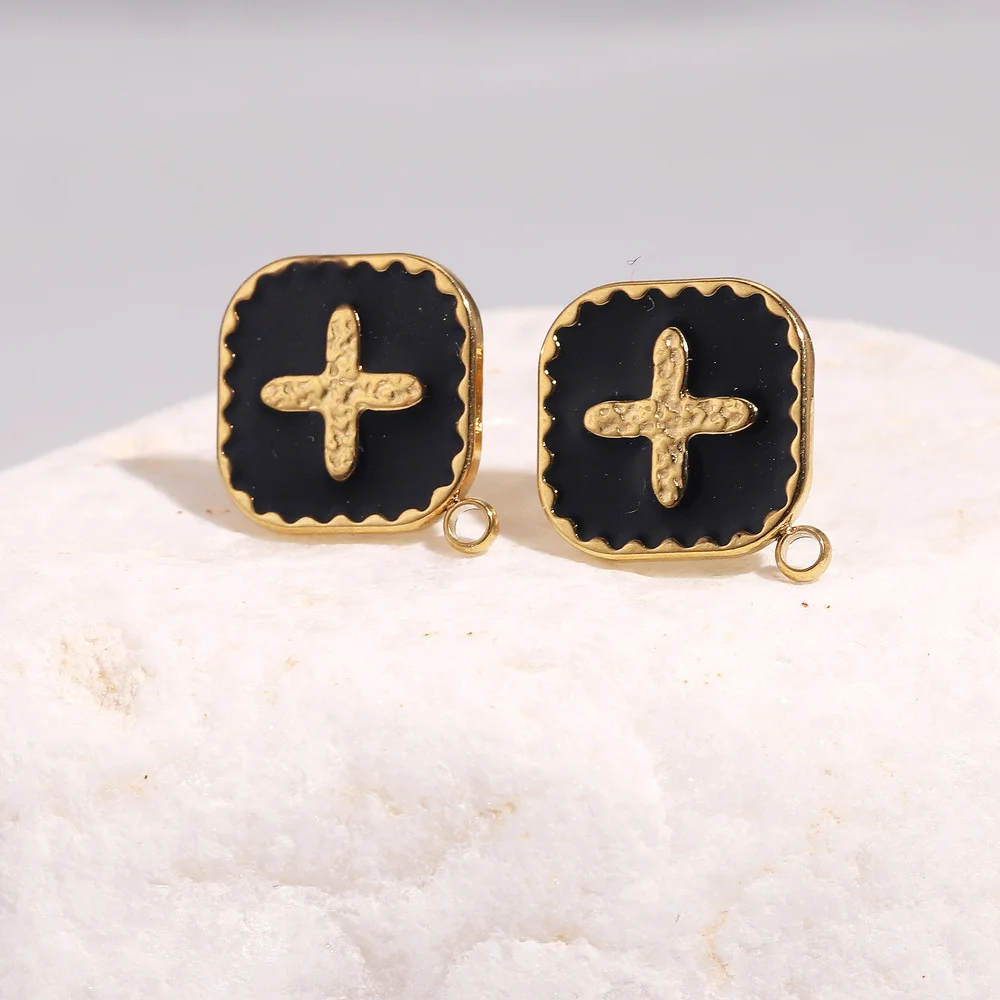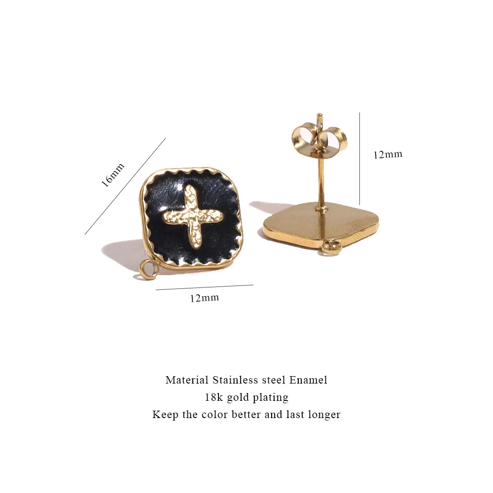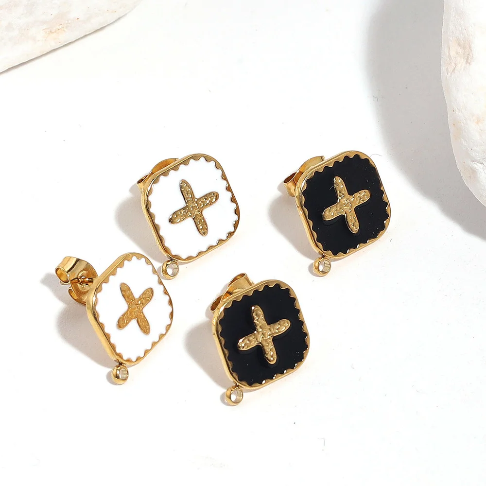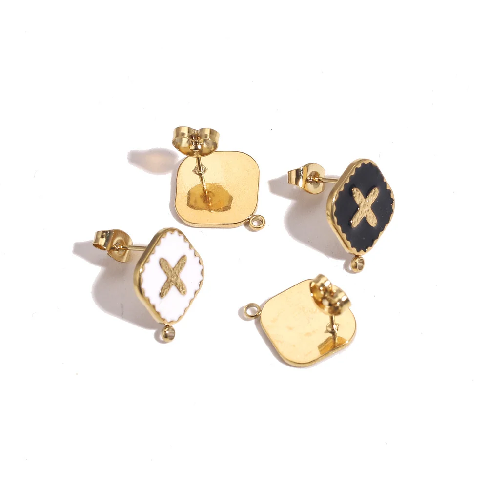 Купить 4pcs Stainless Steel Enamel Black White Earring Posts Gold Ear Studs with Loop Cross Fit DIY Earrings Jewelry Making Supplies за 200рублей