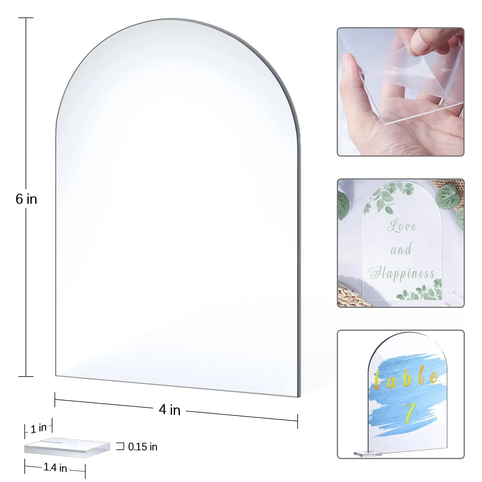 Купить 4x6inch Clear Arch Acrylic Sign with Stand Holder Table Numbers Wedding Signs DIY Blank Round Top Acrylic Sheet for Events Party за 950рублей