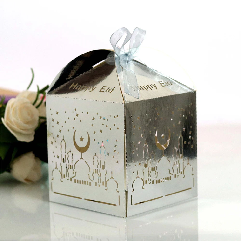 Купить 50PCs/Set Ramadan Mirror Gold Silver Candy Box For Muslim Eid Al-Fitr Party Decor Umrah Mubarak Omra Moubarek 3omra Moubaraka за 650рублей