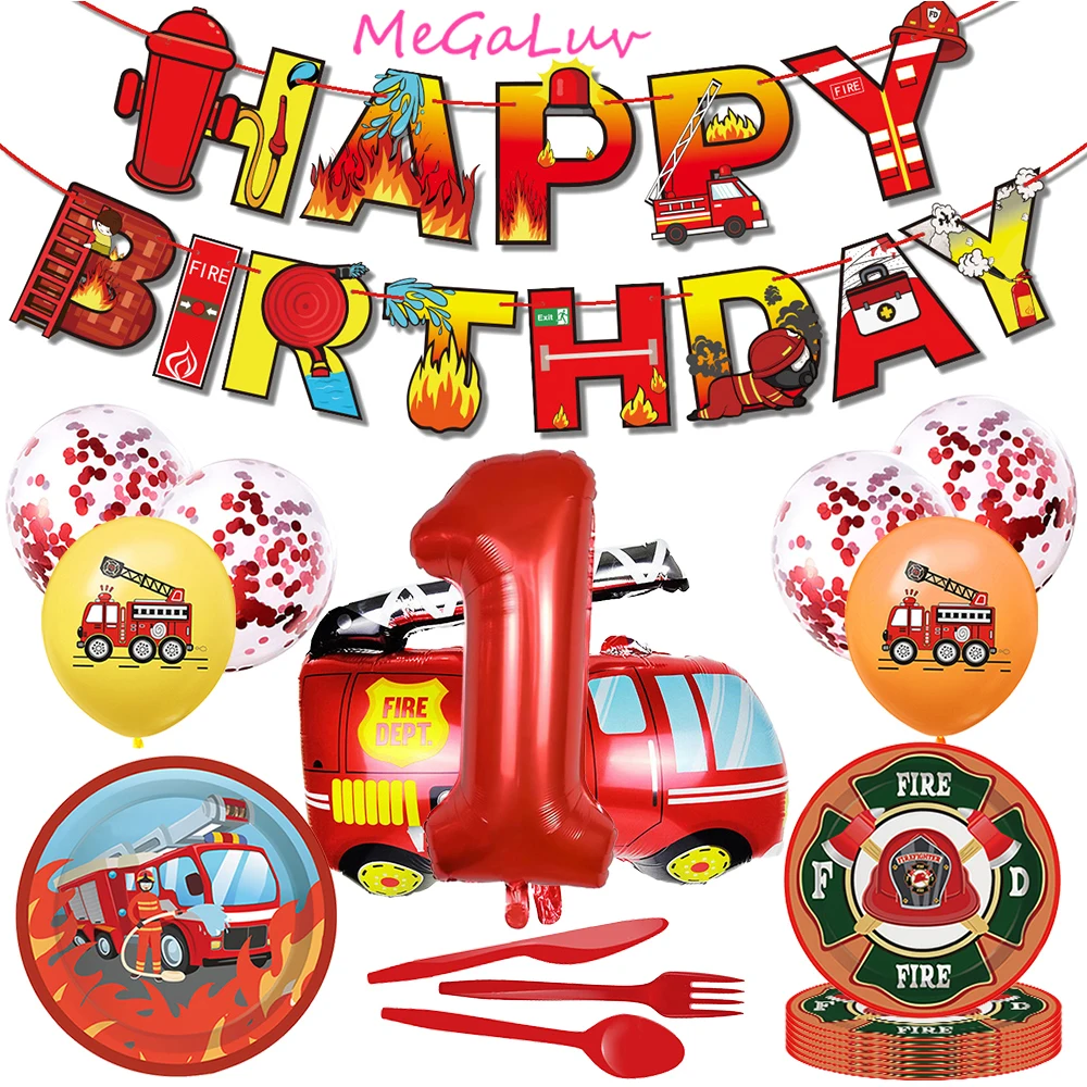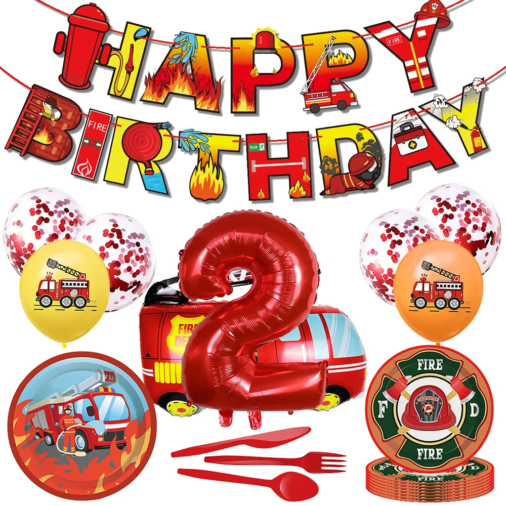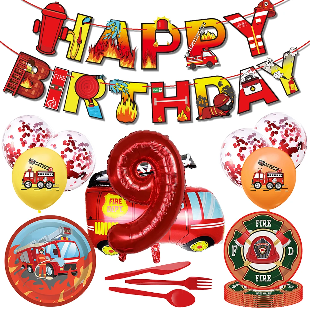Купить 58PCS Fire Themed Excavator Boys Party Disposable Cutlery Plate Set Red Number Balloon Set Baby Children Gift Earth ... за 1000рублей