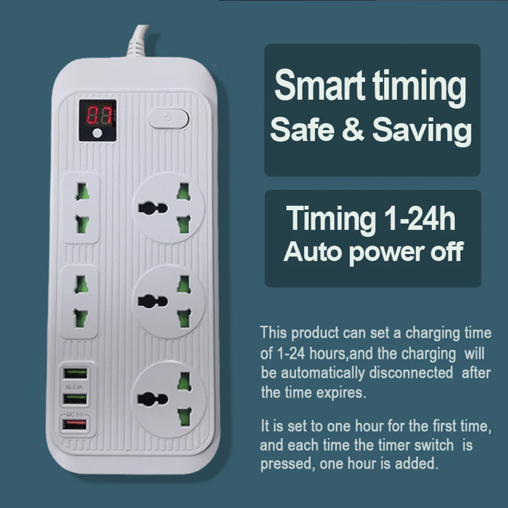 Купить 5AC EU UK US Plug Outlet Power Strip Digital Display Adapter Electrical Sockets USB Ports QC 3.0 Fast Charging Extension Network за 1950рублей