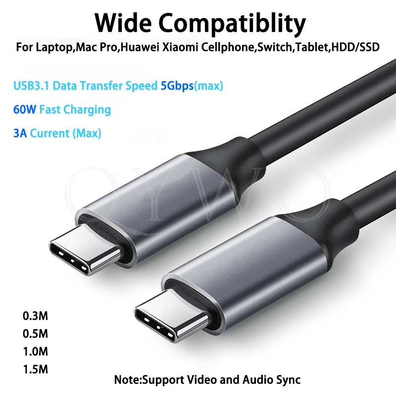 Купить 5PCS/lot 1m USB C to USB C Cable 60W Fast Charging 10Gbps for Macbook pro Laptop for Samsung Huawei Xiaomi cellphone Tablet за 800рублей