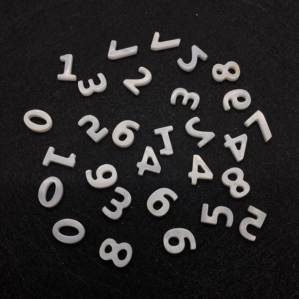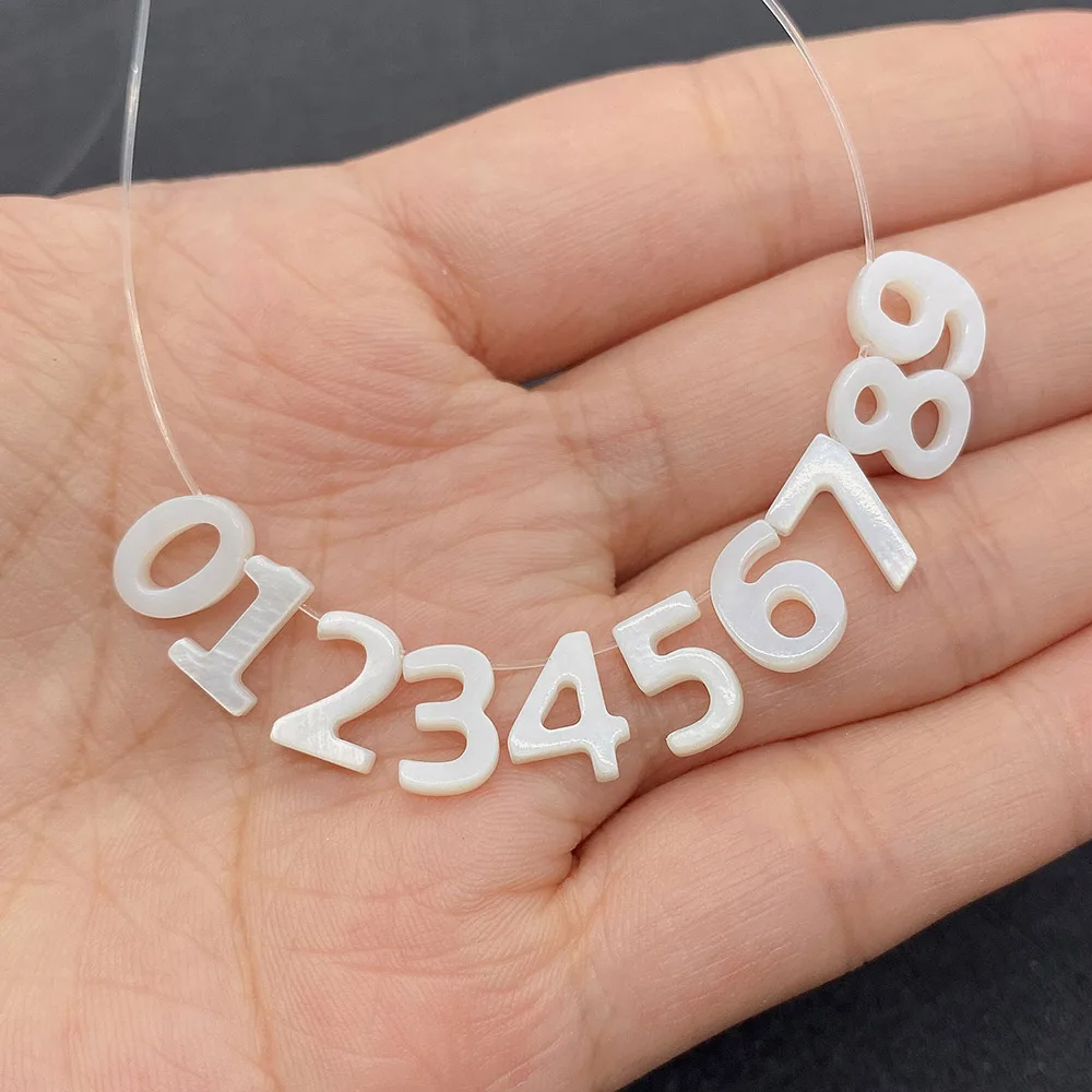 Купить 5pcs Natural Freshwater Shell Beads Arabic Numerals 0-9 Mother Pearl Shell Beads for DIY Jewelry Necklace Bracelet Making 10mm за 200рублей