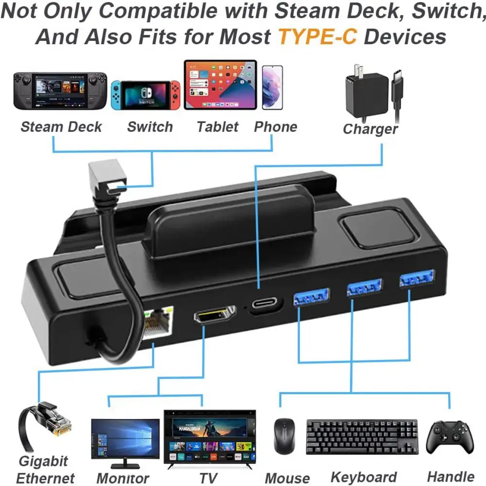 Купить 6 In 1 Dock Station TV Base Stand Hub Holder USB C With RJ45 Port 4K HDMI-compatible For Steam Deck/Switch/Switch OLED Console за 1250рублей