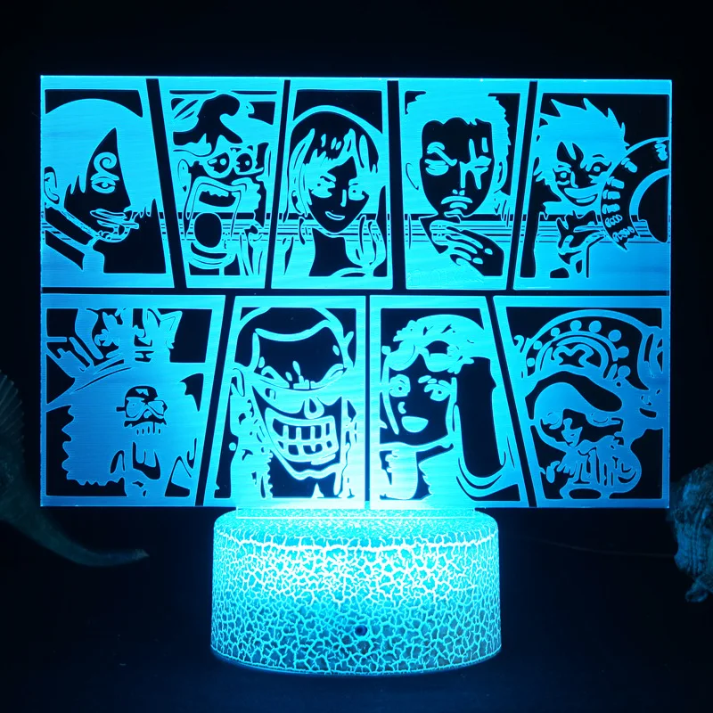 Купить 7 Colors One Piece LED Night Light Toys Anime Cartoons Luffy Colorful 3d Figures Model Table Lamp Toys for Children Xmas Gift за 550рублей