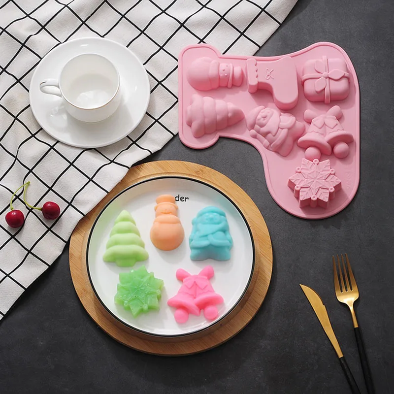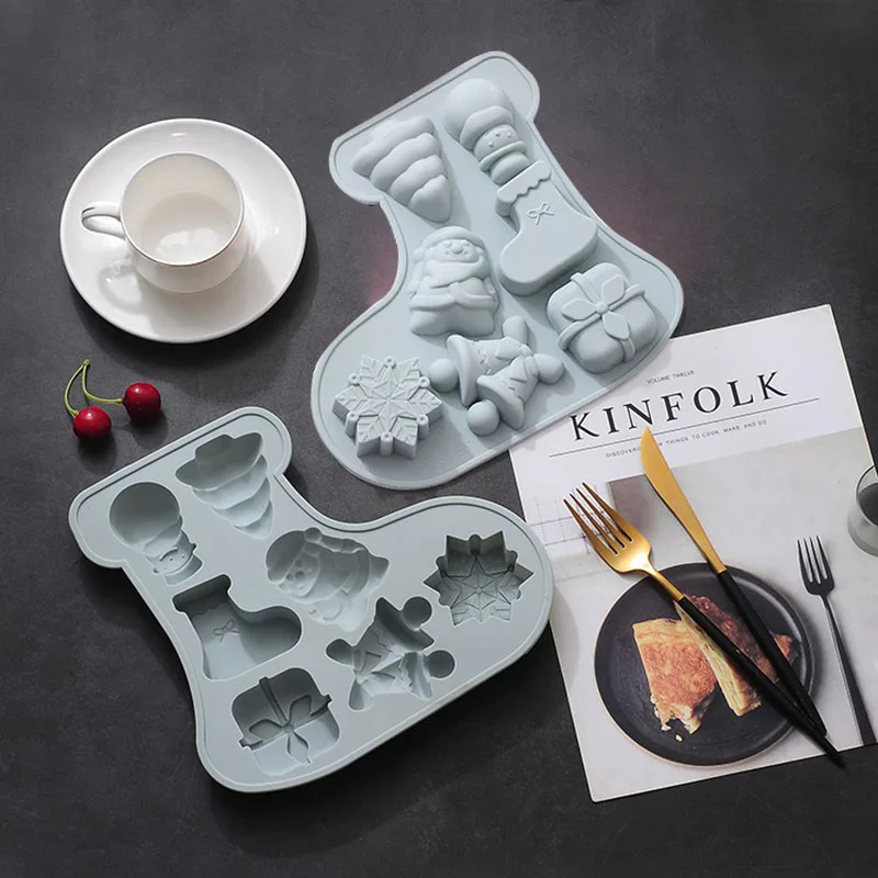 Купить 7 Even Christmas Series Festive Snowman Sock Tree Baking Silicone Mold Cake DIY Handmade Soap Food Complementary Rice Cake за 200рублей