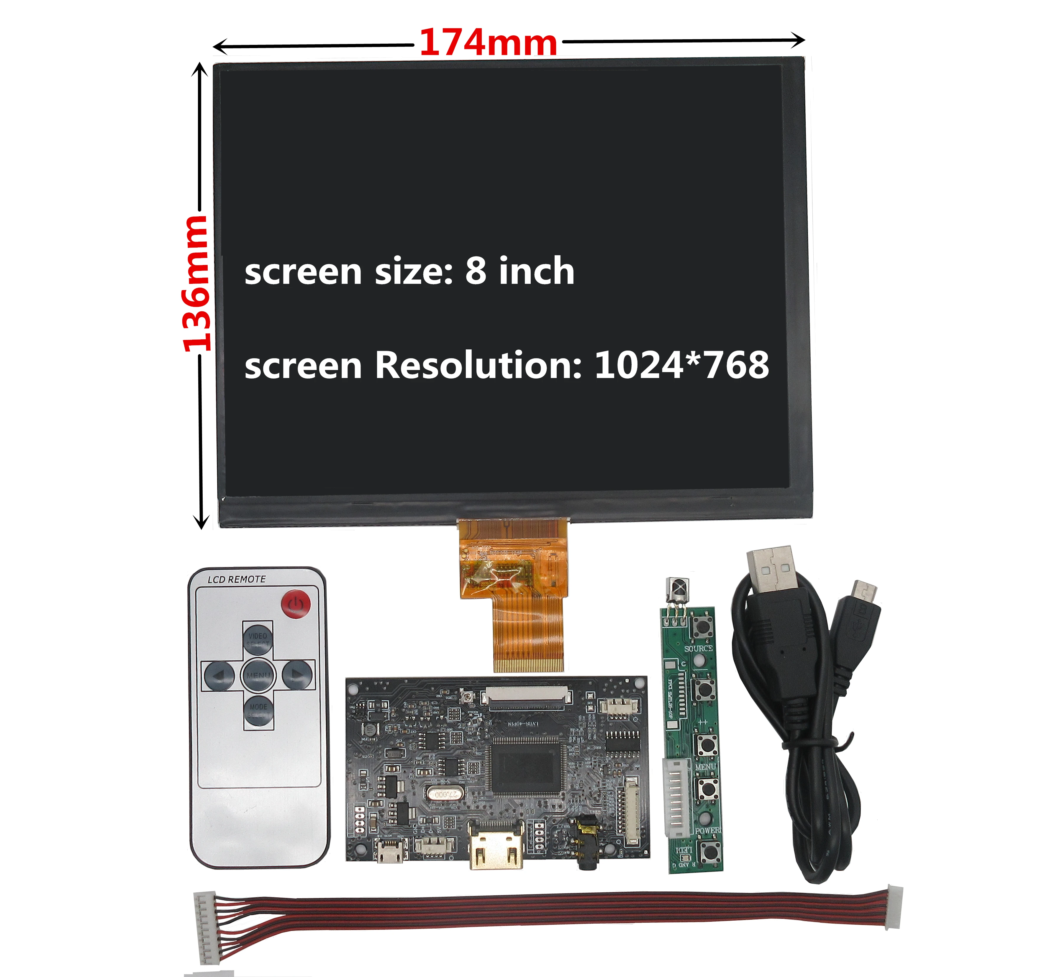 Купить 8 Inch 1024*768 Screen Display LCD Monitor Driver Control Board Audio HDMI-Compatible For Lattepanda,Raspberry Pi Banana Pi за 650рублей
