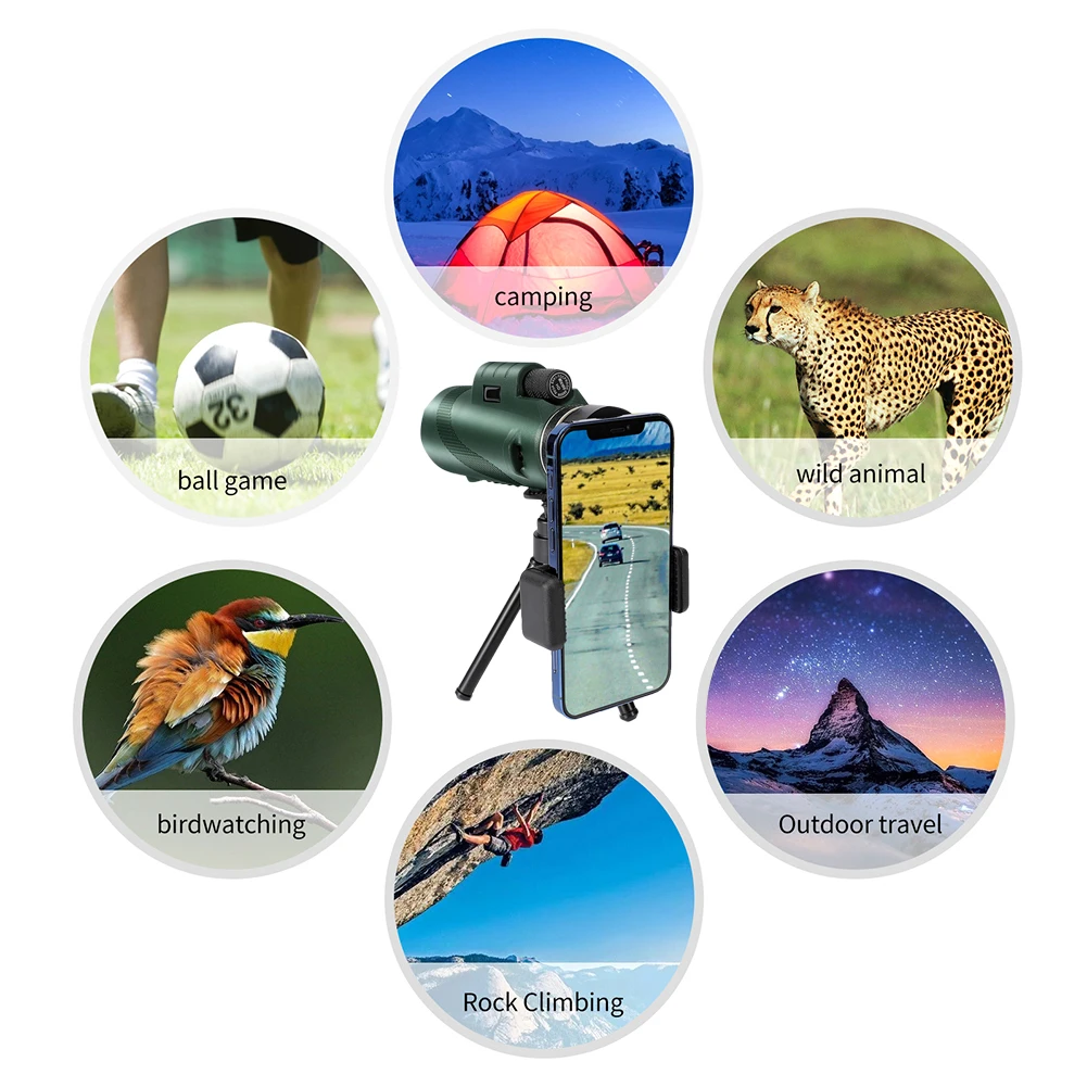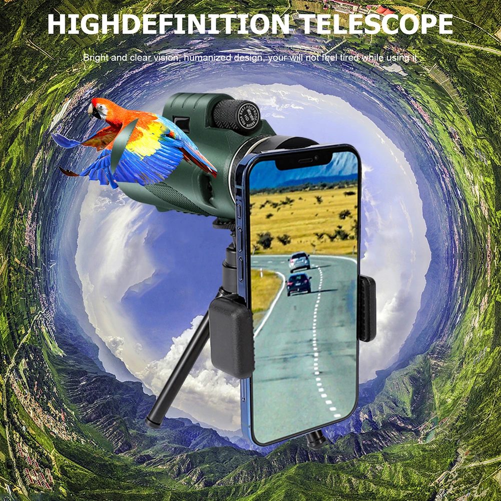 Купить 80X100 Monocular Professional Telescope with Tripod Phone Clip Low Light HD Telescope for Outdoor Bird Watching Camping Tourism за 450рублей