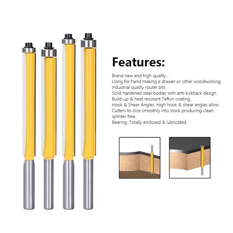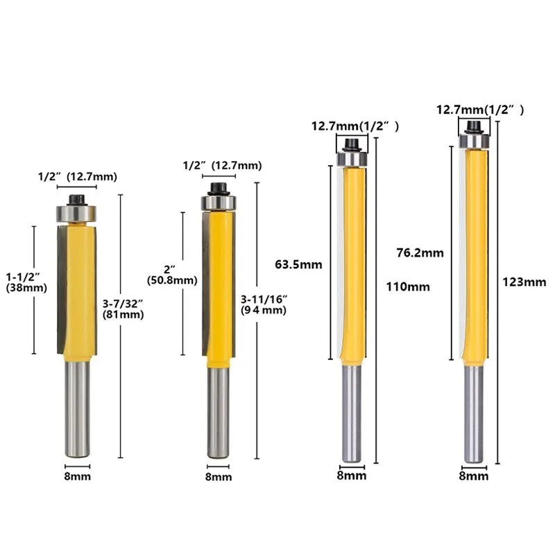 Купить 8mm Shank Tenon Cutter Set 1/2" Dia Flush Trim Straight Router Bit with Bearing End Milling Cutter For Woodworking за 350рублей