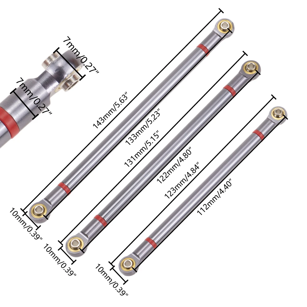 Купить 8pcs Aluminum Link Rod Unassembled Kit 313MM Wheelbase Rod Diameter 7mm for 1/10 RC Crawler Axial SCX10 D90 Upgrade Parts за 500рублей