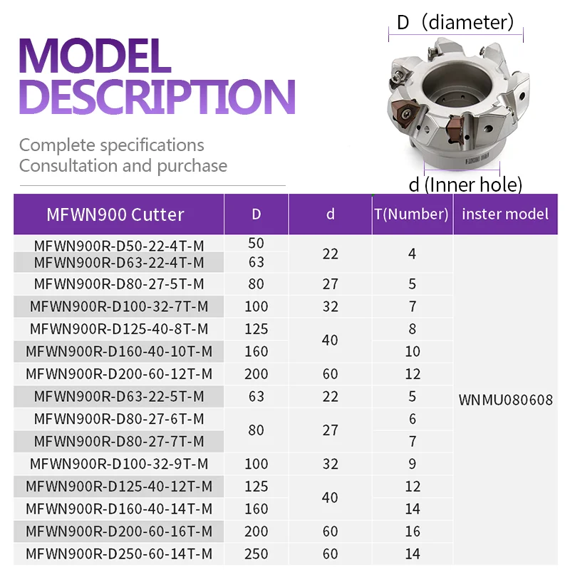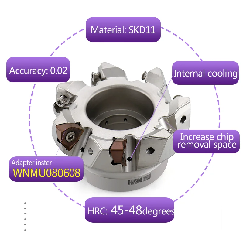 Купить 90° fast-feed inner cooling milling cutter MFWN900 hexagonal double-sided WNMU08 inster heavy-duty cutting D50 D63 за 3750рублей
