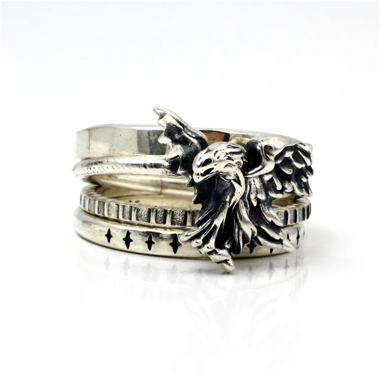 Купить 925 Sterling Silver Eagle handmade 4-ring overlapping combination new style за 2500рублей