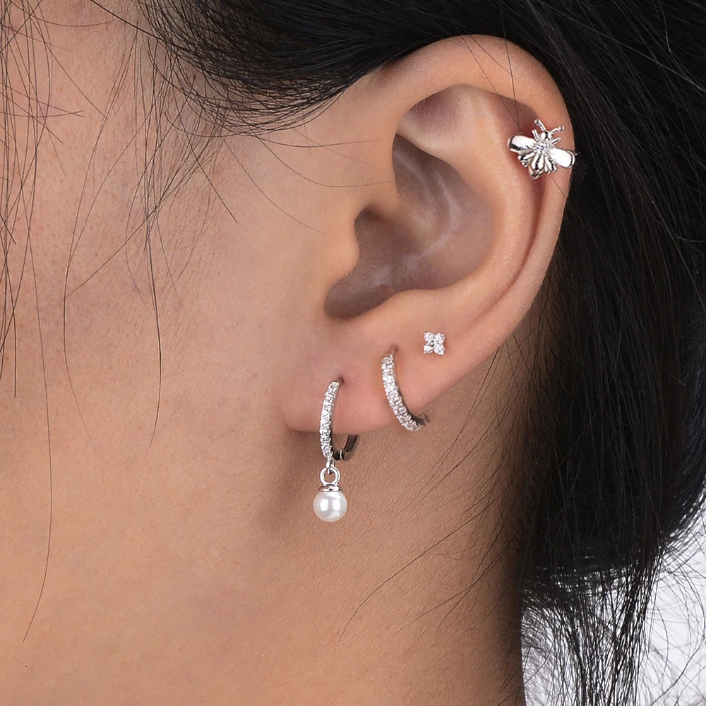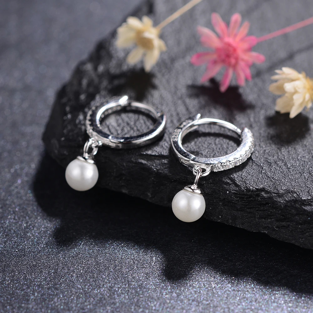 Купить 925 Sterling Silver Hoop Earring Gold Circle Color Zircon Pearl Earrings Fine Jewelry Sweet Simple Noble Gift Earrings for Women за 450рублей