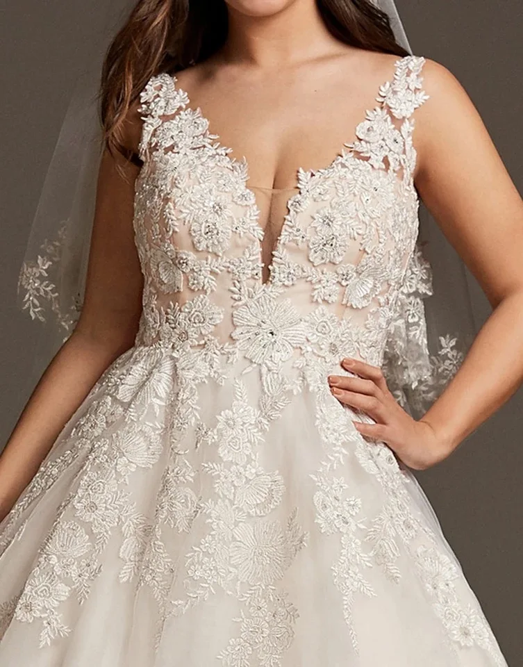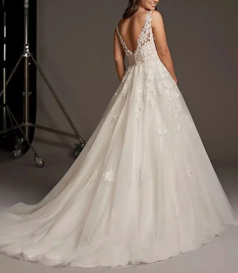 Купить A-Line Wedding Dresses V Neck Sweep / Brush Train Lace Tulle Regular Straps See-Through Illusion Detail Backless with 2021 за 6450рублей