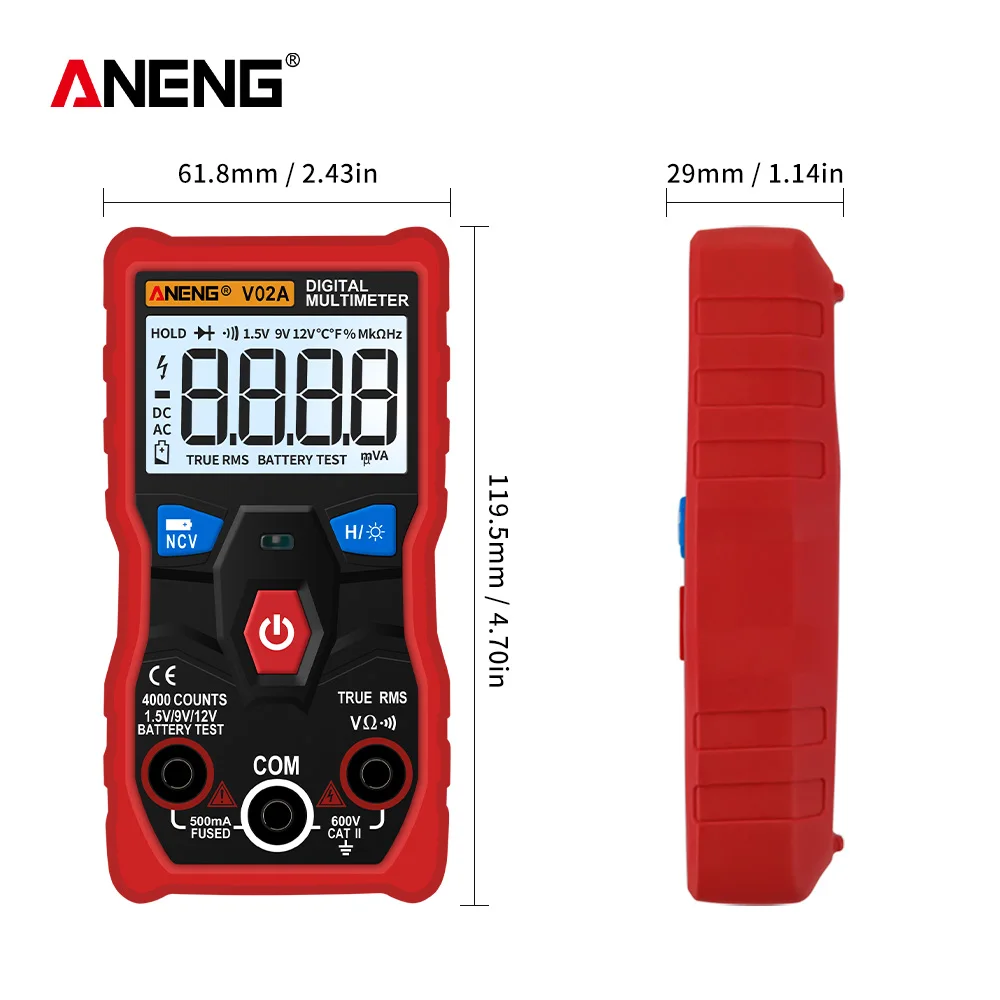 Купить ANENG V02A LCD Digital Multimeter Counts Auto Range AC/DC Voltmeter Meter Tester Capacitor Esr Meter Richmeters Testers за 800рублей