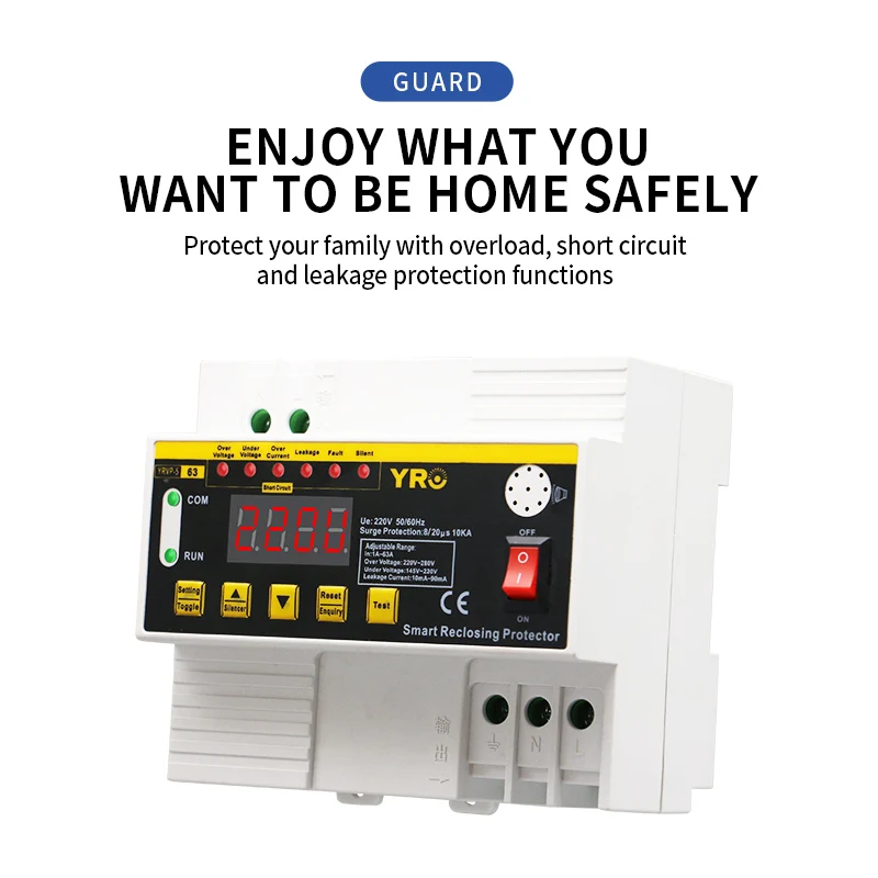 Купить Adjustable Over and Under Voltage Current and Leakage Surge Lightning Protective Device Protector reclosing Relay 40A 63A за 1100рублей