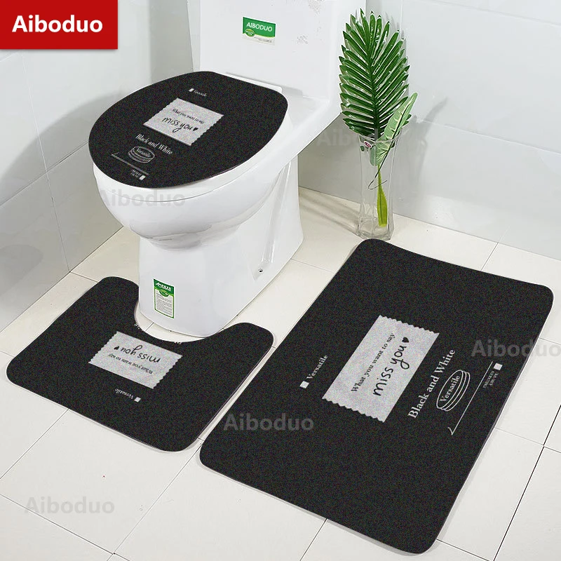 Купить Aiboduo Hot Sale Black Minimalist Style Non Slip 3pcs/set Toilet Lid Cover Set Restroom Rug Carpet Art Home Decoration BathMat за 700рублей