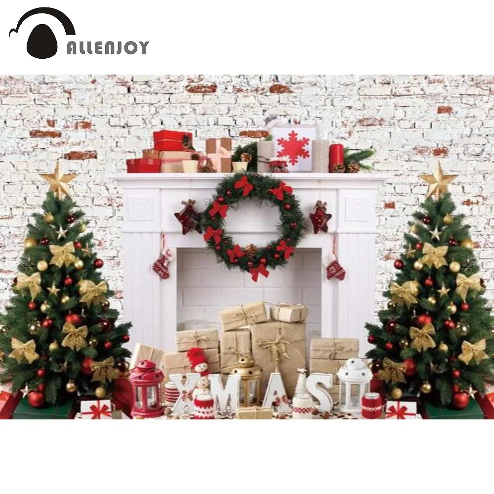 Купить Allenjoy Christmas Interior Party Happy New Year Winter Wreath Trees Backdrop Brick Wall Stars Fireplace Photobooth Background за 550рублей