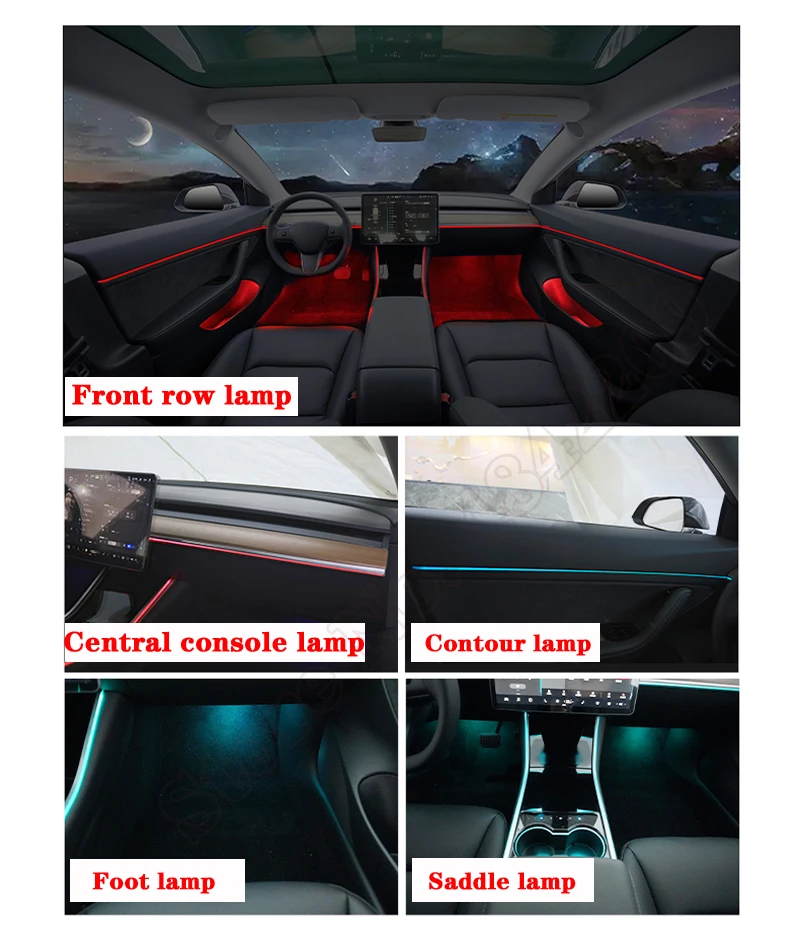 Купить Ambient Light Set For Tesla MODEL 3 2019-2022 MODEL Y Decorative LED Atmosphere Lamp illuminated Strip 64 Colors Touch Control за 8050рублей