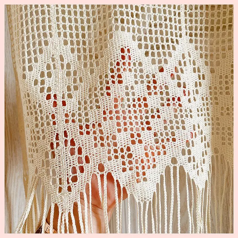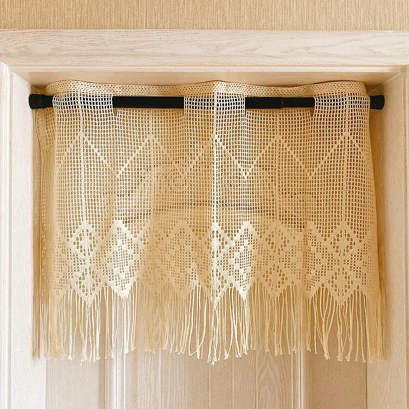 Купить American Country Crochet Hollow Short Curtains for Kitchen Manual Linen Geometry Tab Top Half Curtains Tassel Small Curtain A123 за 800рублей