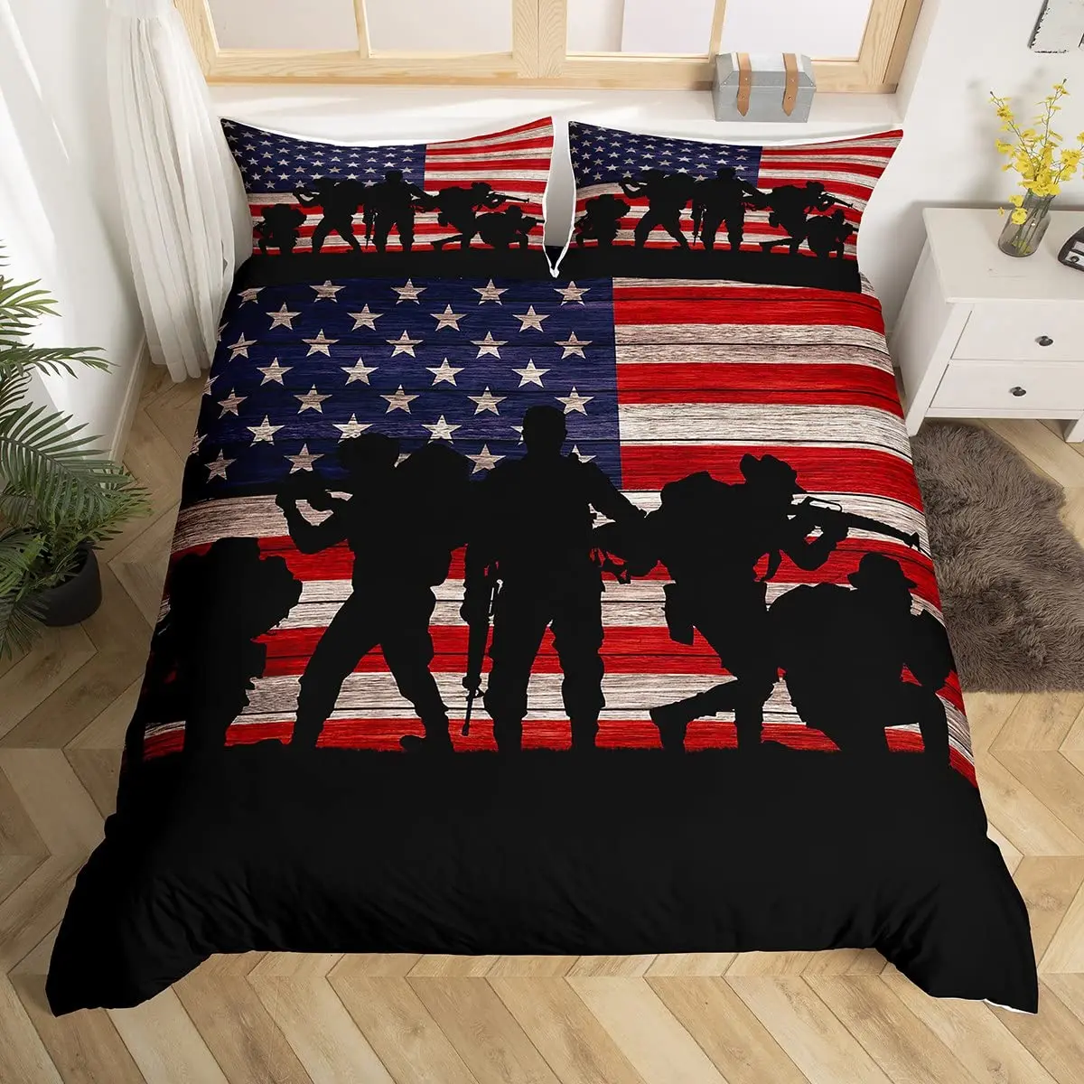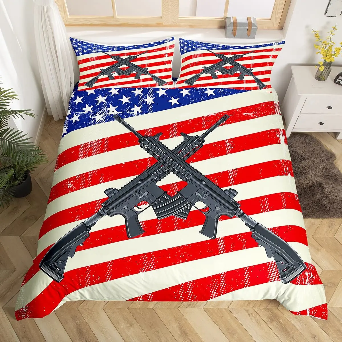 Купить American Flag Duvet Cover Machine Gun Comforter Cover Queen King Polyester Quilt Cover USA Federations Stars Stripe Bedding Set за 700рублей