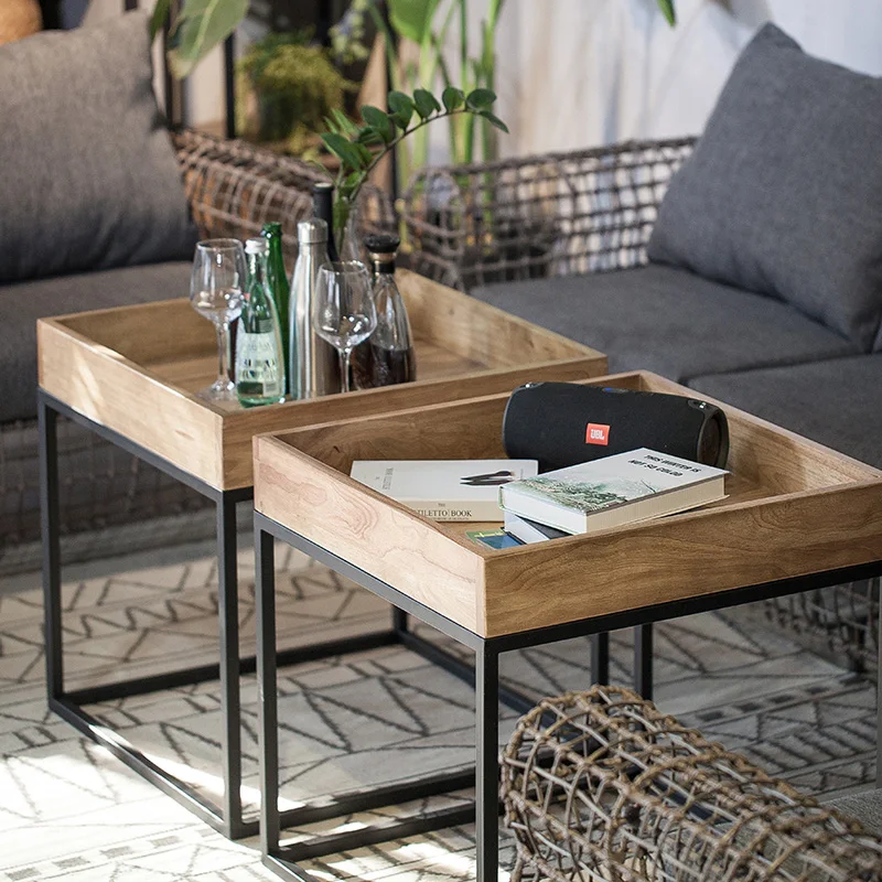 Купить American-Style Solid Wood Wrought Iron Coffee Table Corners Industrial Style Living Room Small Square Creative Sofa Side Table за 7000рублей