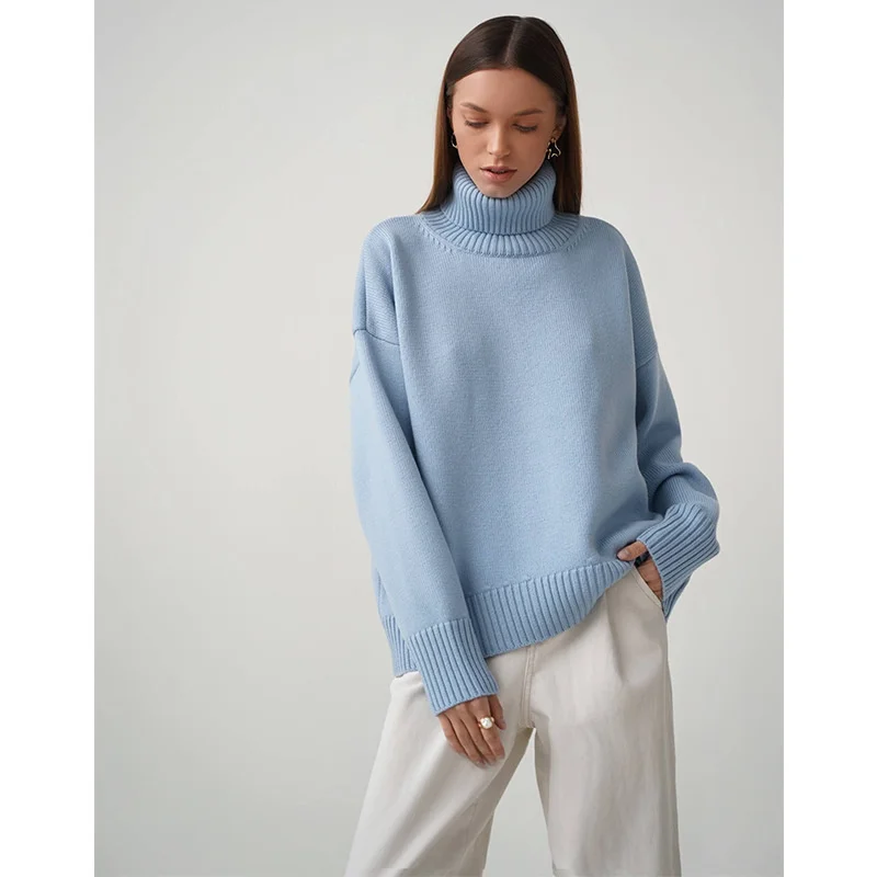 Купить American Style Women's Sweaters Pure Color High Collar Sweater Winter 2022 New Loose Temperament Pullover за 2350рублей