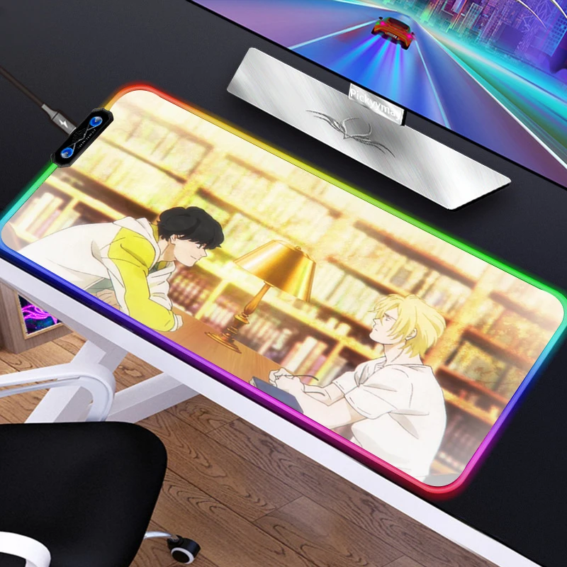 Купить Anime Banana Fish Mouse Pad PC Computer Large Mouse Mat RGB Carpet Mousepads LED Backlight Mause Pad Gamer Keyboard Desk Mat за 800рублей