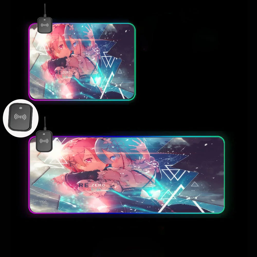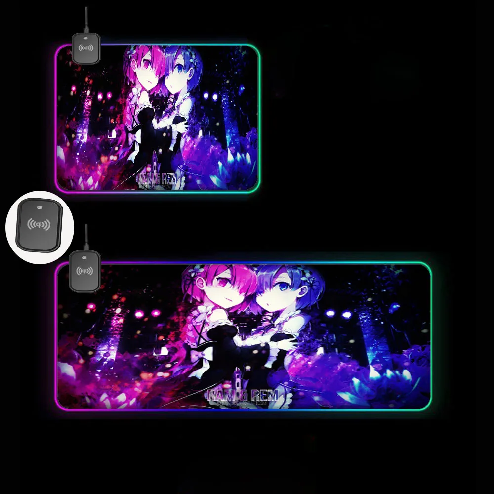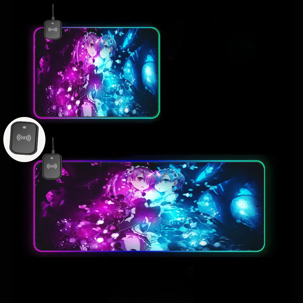 Купить Anime Rem ReZero RGB Wireless Charging Large Mouse Pad Glowing LED Laptop Gamer Accessories USB Type-C for Keyboard Rug Deskmats за 1600рублей