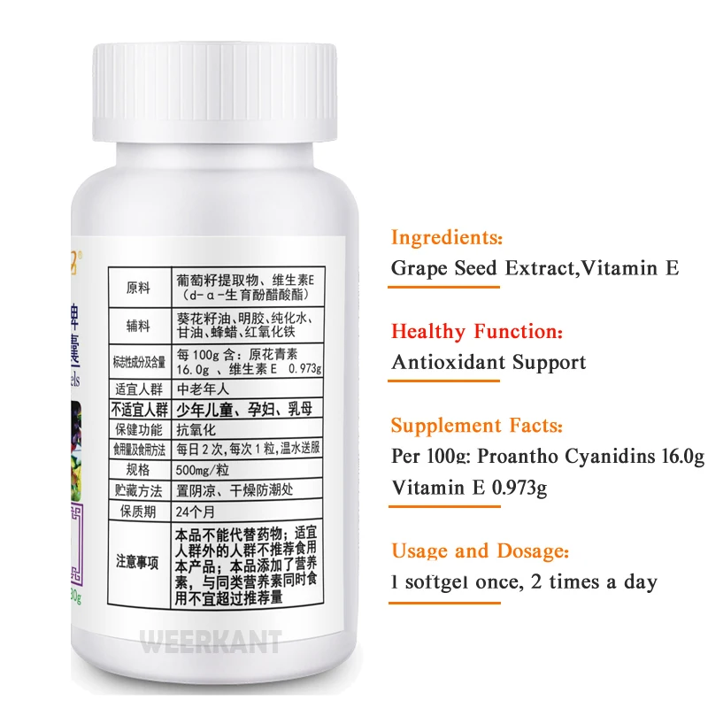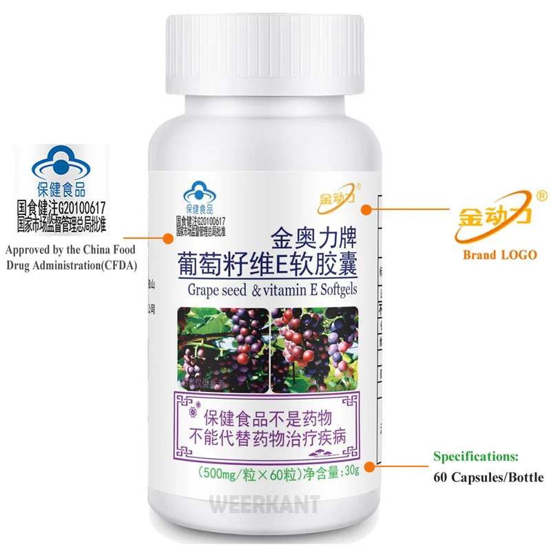 Купить Antioxidant Support Remove Acne Reduce Freckles Dark Spots Grape Seed & Vitamin E Extract Capsule за 650рублей