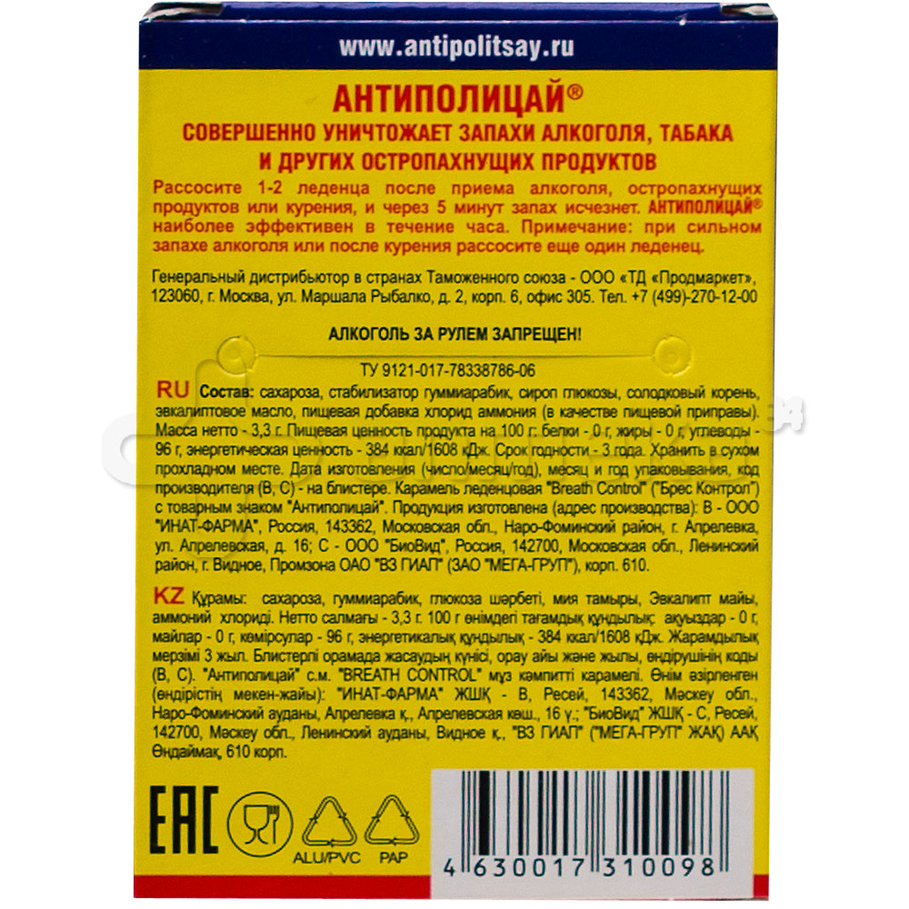 Купить Антиполицай, таблетки, 4 шт . в интернет-аптеке в Москве, низкие цены и официальная инструкция по применению, честные отзывы покупателей и фармацевтов о Антиполицай, таблетки, 4 шт . .