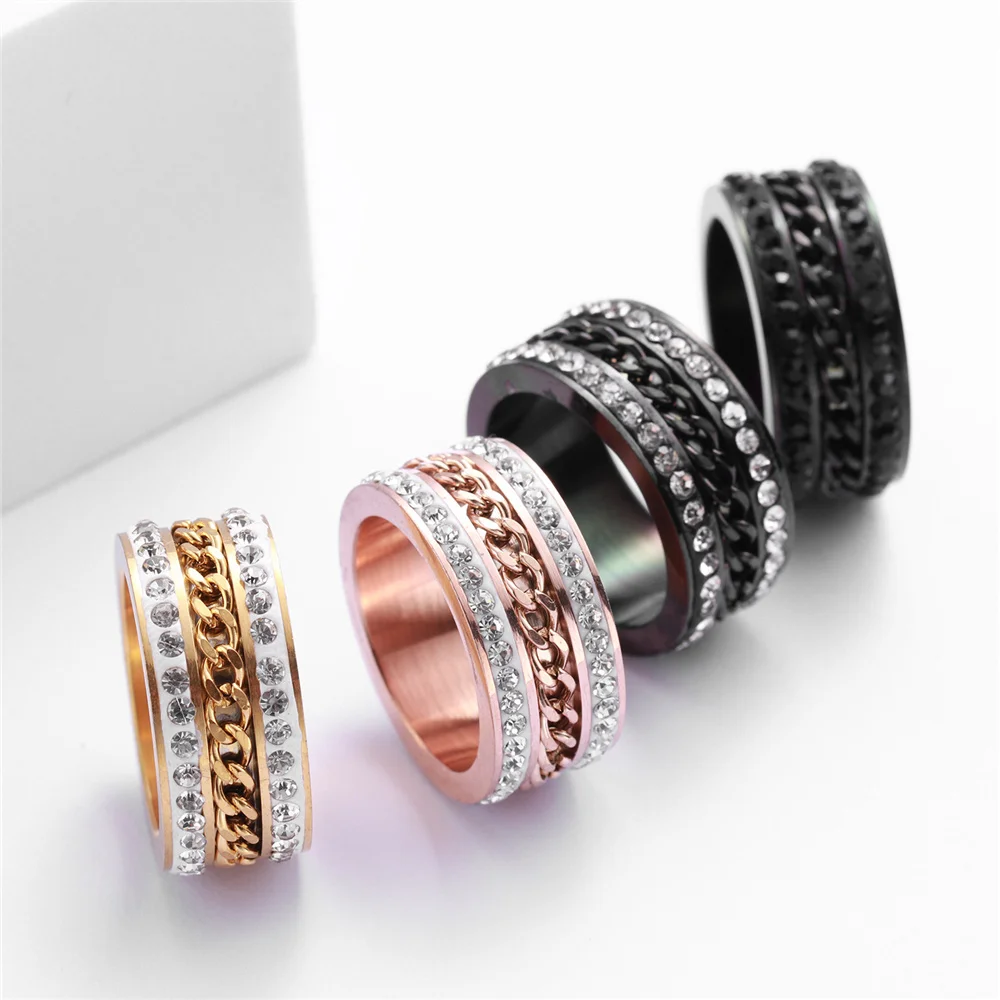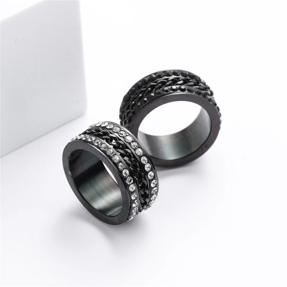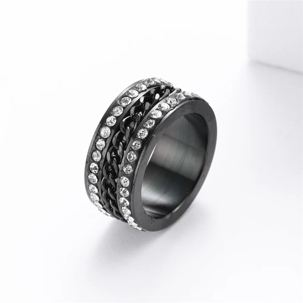 Купить Anxiety Fidget Spinner Rings for Men Women Stainless Steel Iced Out Spinning Rotate Chain Ring Punk Anti Stress Jewelry за 300рублей