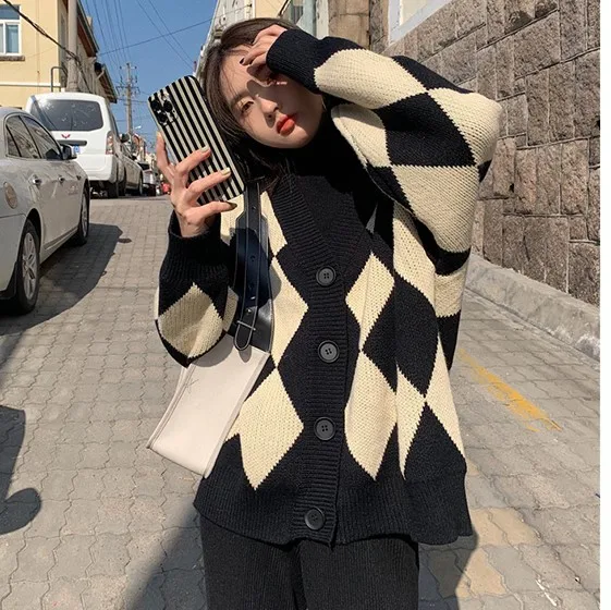 Купить Argyle Color Women Sweater Cardigan Female Design Sense V-neck Top 2022 Spring Spring Knitted Cardigan Coat Korean Fashion за 800рублей