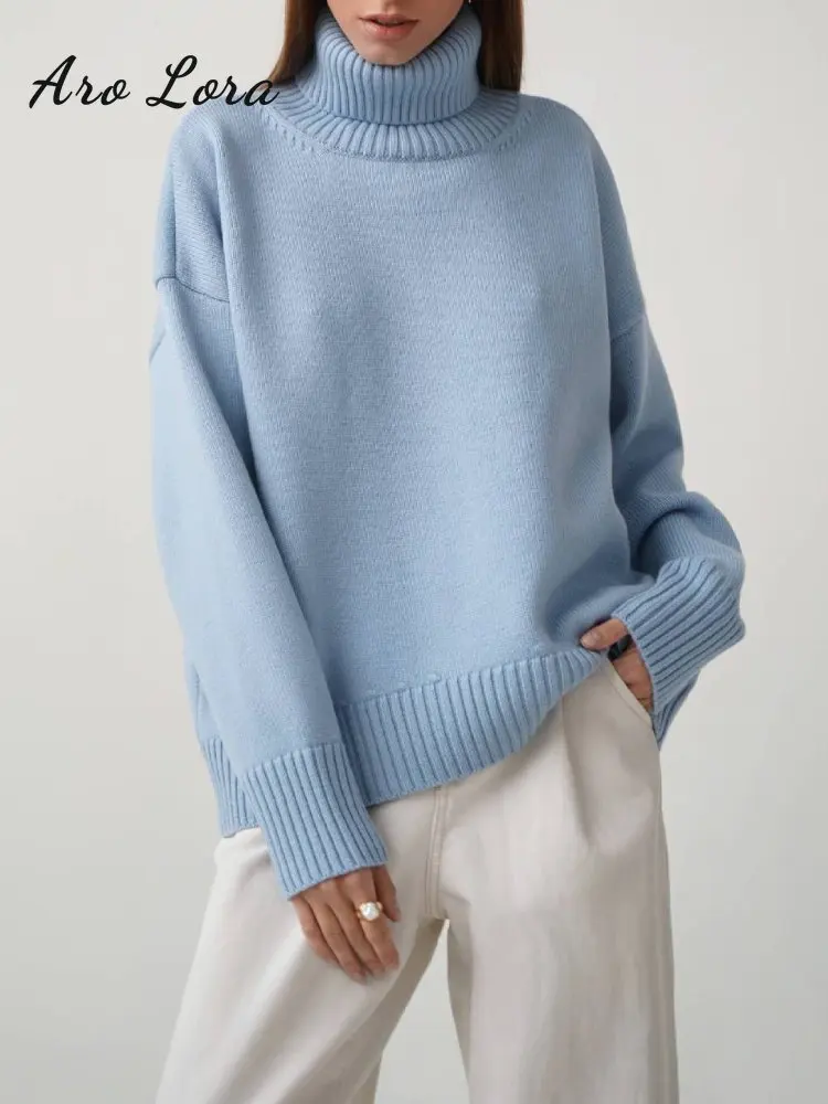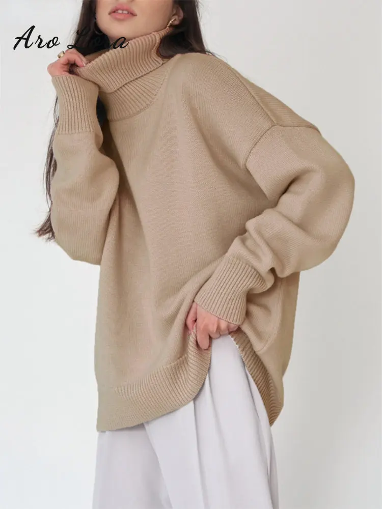 Купить Aro Lora Women Turtleneck Sweater CHIC Autumn Winter Thick Warm Pullover Top Oversized Casual Loose Knitted Jumper Female Pull за 1400рублей