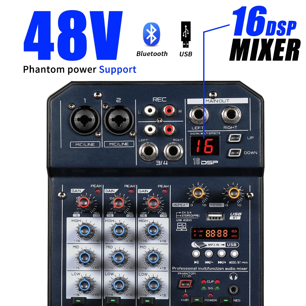 Купить Audio Mixer 4 Channel Dj Mixing Console Sound Card With Monitor 16 Echo DSP 48V Phantom Power For PC Record Karaoke Party за 2450рублей