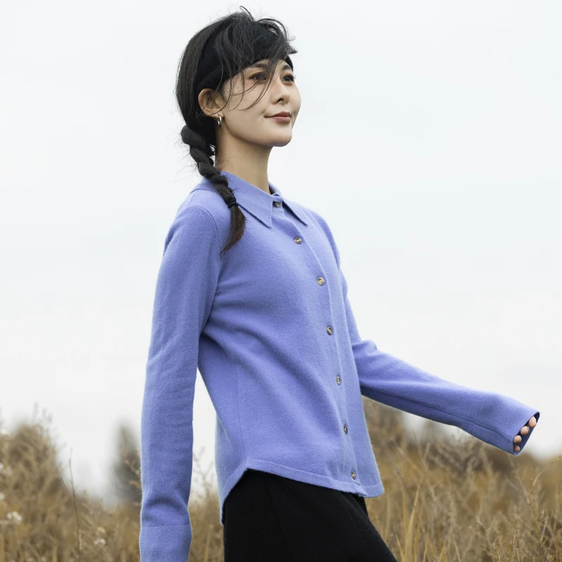 Купить Autumn Winter 2022 New Women's Pure Wool Polo Neck Knitted Cardigan Pure Color Button Solid Color Cashmere Sweater за 1900рублей