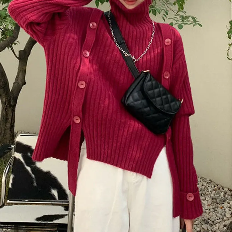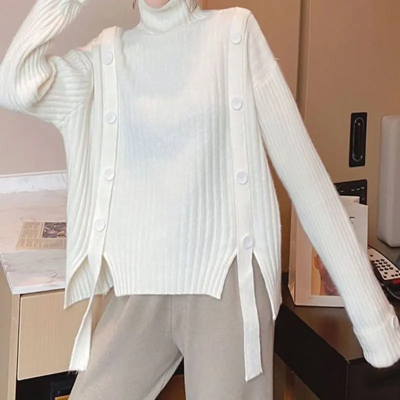 Купить Autumn Winter New Women's Clothing Pullovers Sweaters Turtleneck Loose Jumpers Tops Irregular Drawstring Solid Color Long Sleeve за 1250рублей